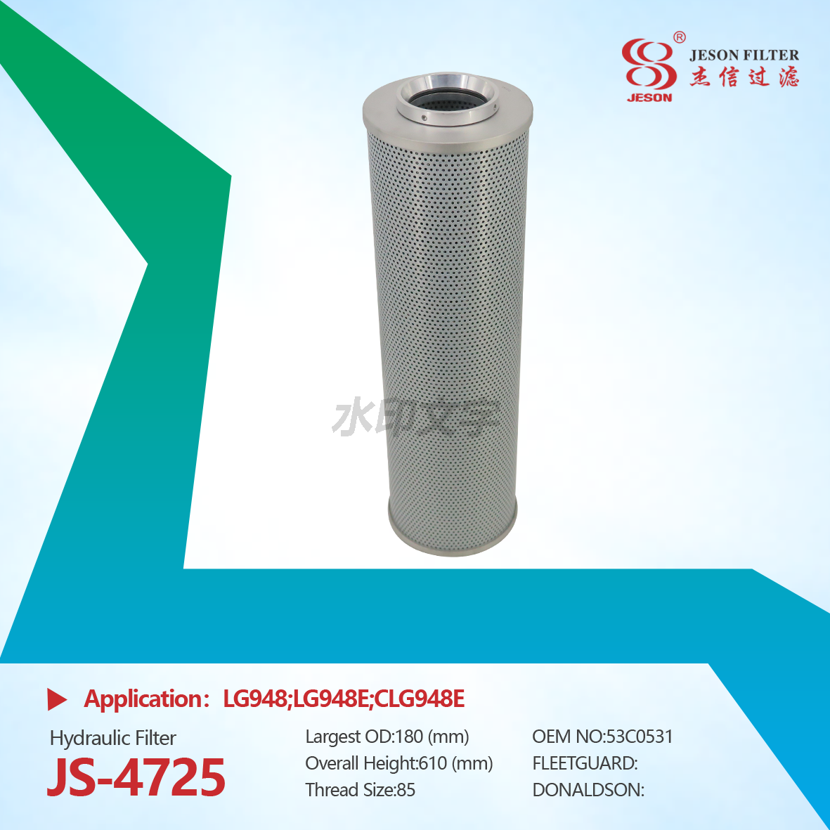 JS-4725 Excavator Return Oil Filter element Hydraulic Oil Inlet pilot Filter 53C0531 Adapted to Liugong CLG945E CLG948E CLG950E